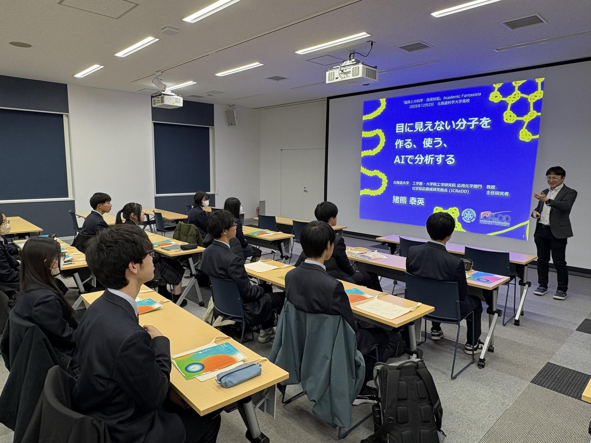 はじめに、猪熊泰英教授から「化学と情報科学の融合」
