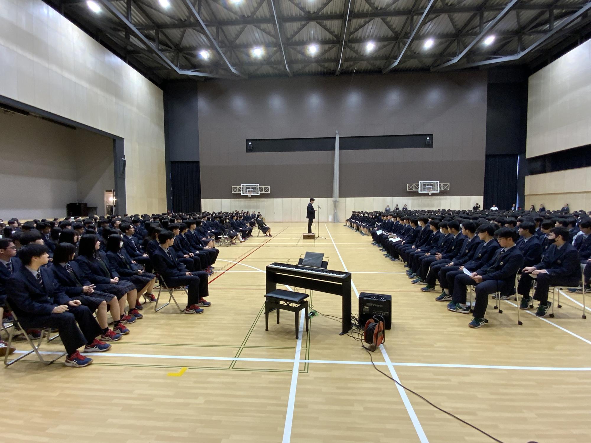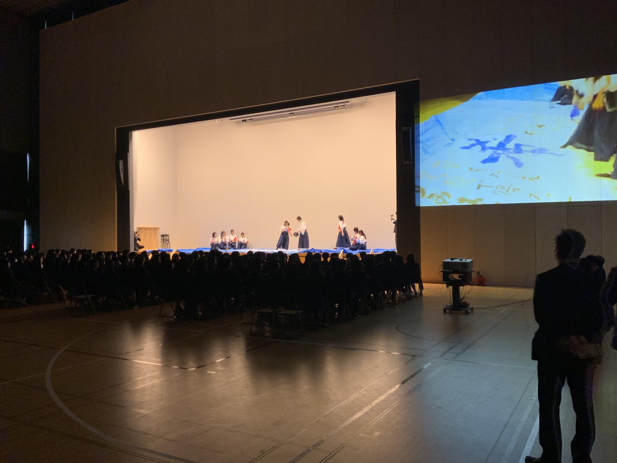 在校生から卒業生への記念品贈呈(今年は「タンブラー」)、書道部によるパフォーマンス、先生方からのお祝いメッセージ上映、そして恒例の在校生による合唱など様々な企画によって、3年生の門出を生徒・教職員全員でお祝いしました。